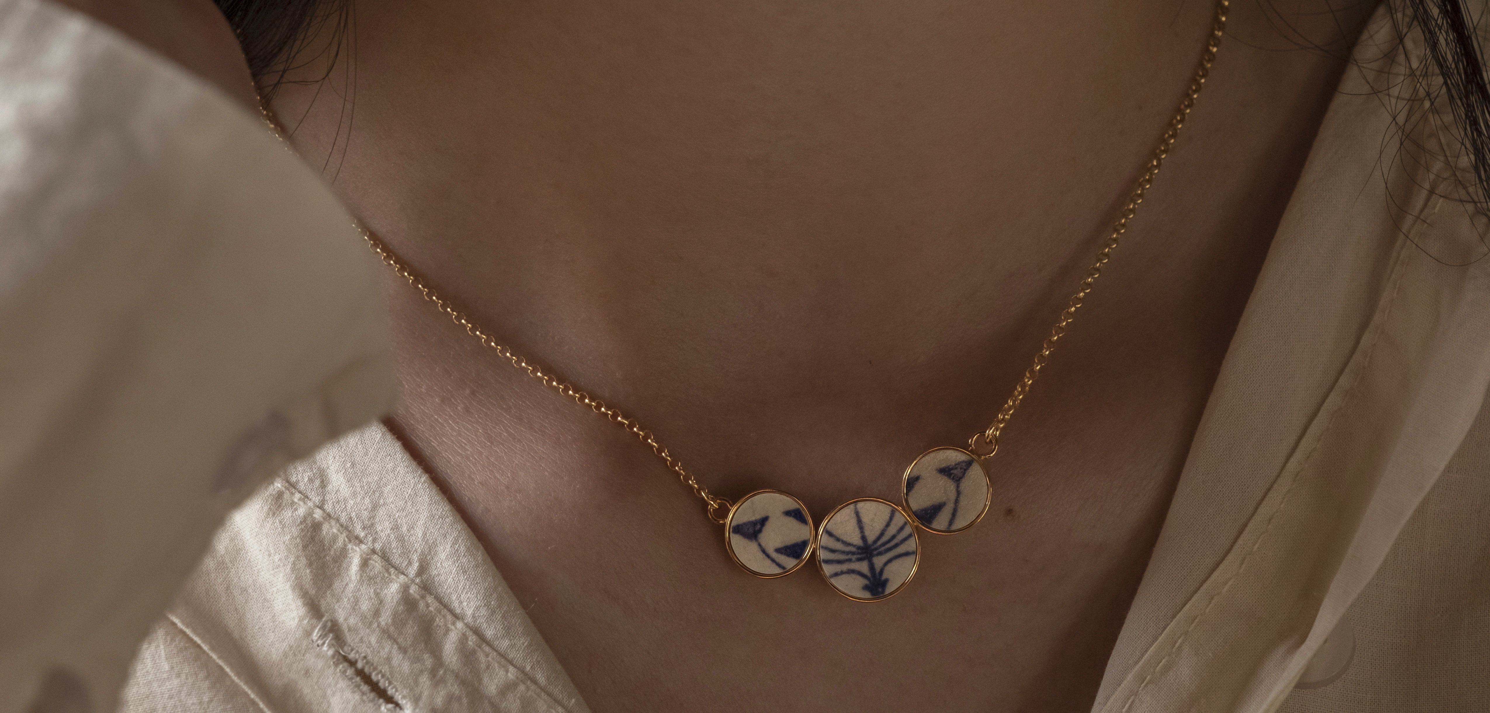 Chaque bijou raconte une nouvelle histoire moderne qui capte l'héritage et la beauté intemporelle de la faïence recyclée.