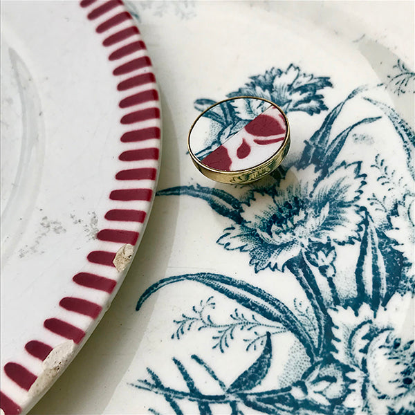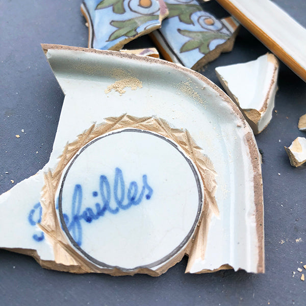 « Pour donner vie à chaque pièce, je conçois et façonne de mes propres mains la faïence ancienne. Elle est d’abord coupée, limée puis vernie.
