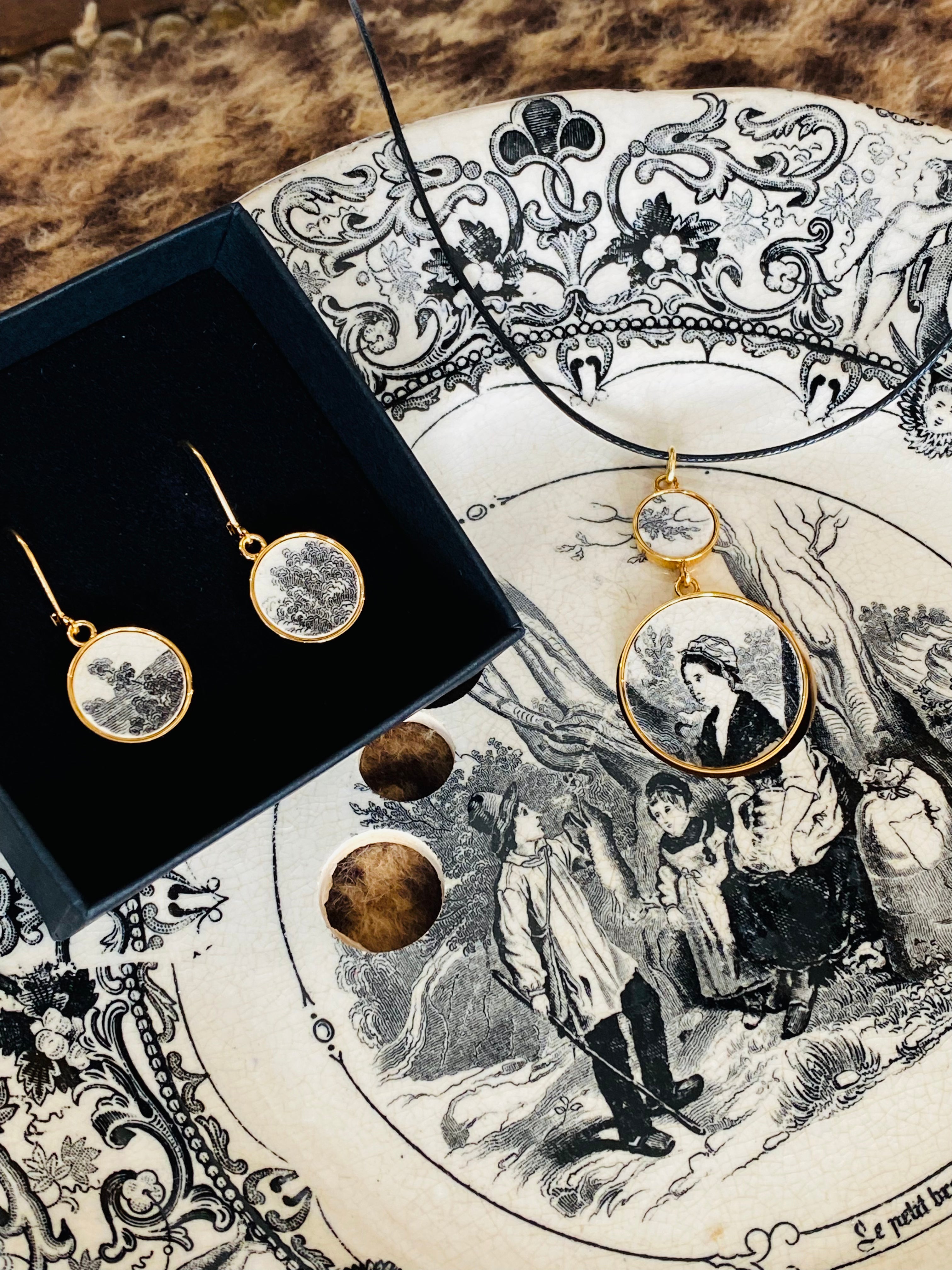 À l'atelier Vézanne, Clélia créée pour vous des bijoux sur-mesure à partir de votre assiette de famille, transformant chaque pièce en un souvenir précieux. Que ce soit un pendentif, un collier, des boucles d'oreilles, un bracelet, ou même une bague, nous vous offrons une large gamme de choix pour immortaliser vos moments de bonheur.