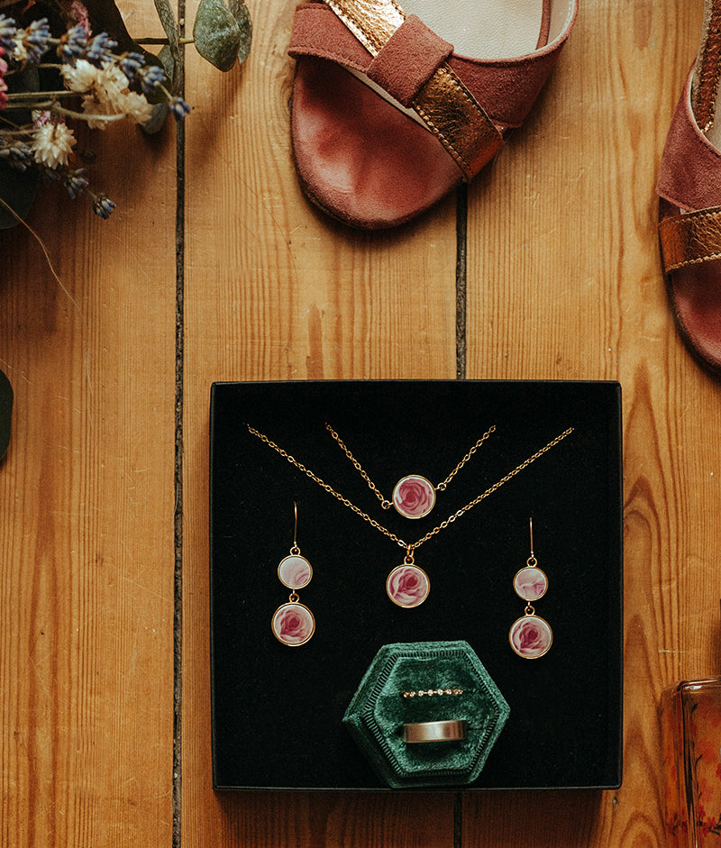 Découvrez une manière innovante de transformer vos souvenirs de mariage en véritables œuvres d'art. Nos services de mariage vous permettent de sublimer vos assiettes de mariage en bijoux uniques et personnalisés.